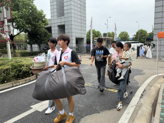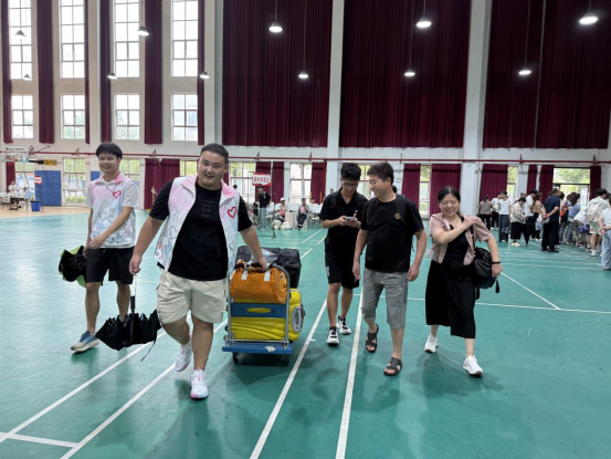 清晨,队员们早早守候在校门口,看到新生及家长的身影便立刻迎上,从接过沉甸甸的行李开始,用热情的问候缓解新生初入校园的陌生感。队员们或手提鼓鼓的行李袋、或合力推着满载物品的拖车,与新生及家长并肩走向校园的深处,正是这一环节的生动写照,成为新生认识文理的“第一张名片”。
