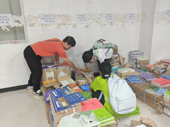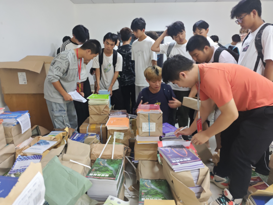 活动当天清晨,“志诚先锋”服务队的志愿者们便已集结完毕。他们统一佩戴工作牌,精神抖擞地来到教材仓库。在负责人的统筹安排下,志愿者们迅速明确分工,有的负责按班级、按科目分拣教材,有的负责清点数量、打包捆扎,还有的负责引导新生、解答疑问。考虑到新生人数多、教材种类杂,服务队特别实行了“一班一志愿者”的精准对接机制,为每个新生班级都指派了一名专属志愿者,全程跟进教材领取流程,确保发放工作井然有序。