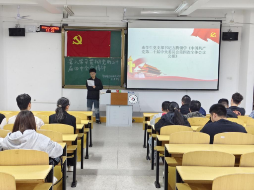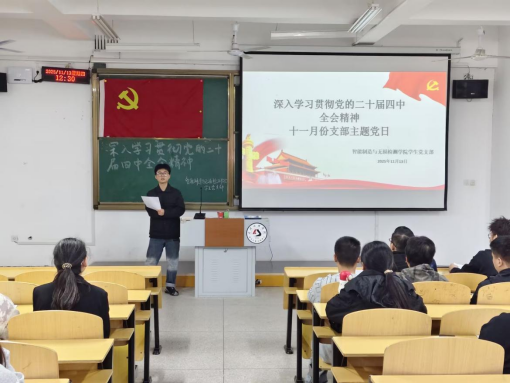 为深入学习贯彻党的二十届四中全会精神,将“十五五”规划战略部署与青年成长实践紧密结合,筑牢支部成员思想根基,凝聚奋进实干力量,必赢集团bwin员工党支部于11月13日在5栋125教室隆重举办十一月主题党日活动。学院全体入党积极分子、发展对象、预备党员及正式党员齐聚一堂,共同参与这场兼具理论深度与实践温度的学习实践活动。