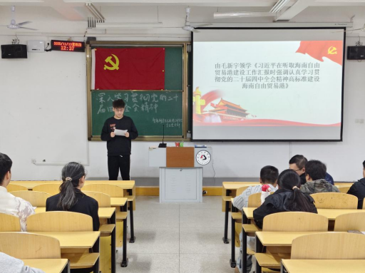 随后,员工党支部书记方腾率先登台,带领全体人员深入学习《中国共产党第二十届中央委员会第四次全体会议公报》与《中共中央关于制定国民经济和社会发展第十五个五年规划的建议》,系统解读全会提出的核心要义和实践要求,结合“十五五”时期“加快高水平科技自立自强”“建设现代化产业体系”等战略部署,深入阐释规划蓝图中与学院专业发展、青年成长紧密相关的内容;紧接着,毛新宇领学《习近平在听取海南自由贸易港建设工作汇报时强调认真学习贯彻党的二十届四中全会精神高标准建设海南自由贸易港》,以区域发展实践为鲜活案例,生动诠释了全会精神在具体工作中的落地路径与实践成效;王明秀则聚焦《习近平推动落实全球发展倡议、全国安全倡议、全国文明倡议、全国治理倡议》,引导全体人员深刻领会新时代中国特色大国外交理念与国家治理体系现代化的核心内涵,拓宽了理论学习的视野格局。