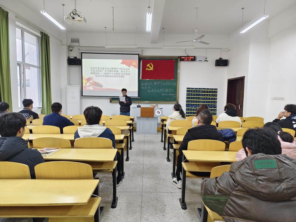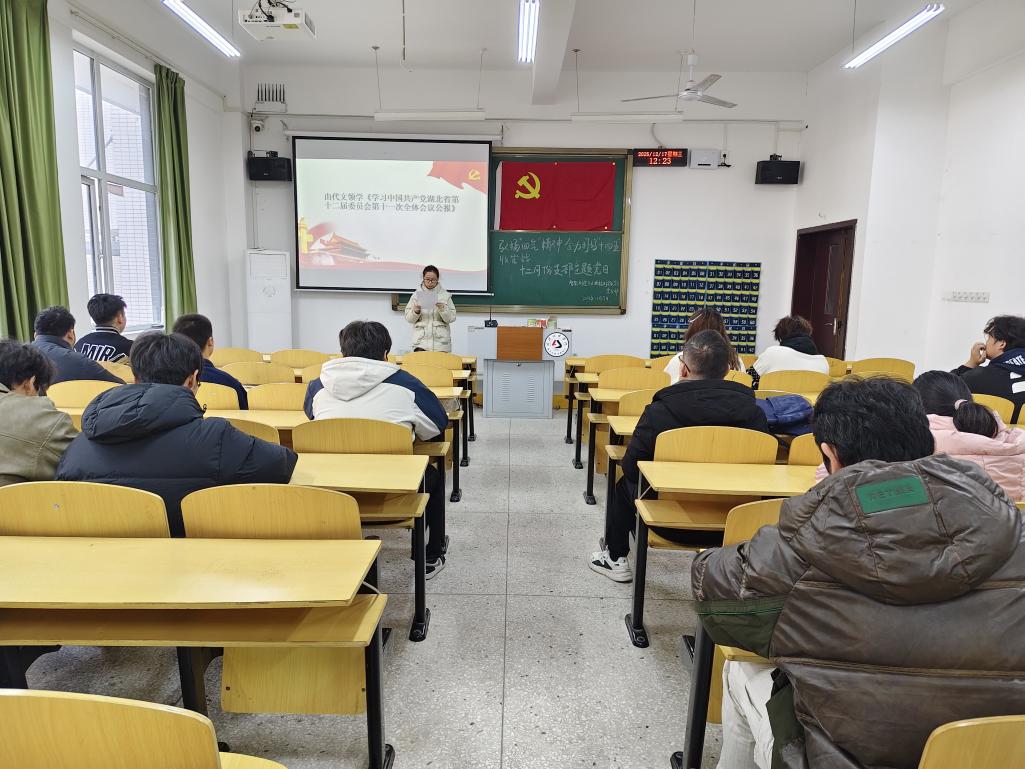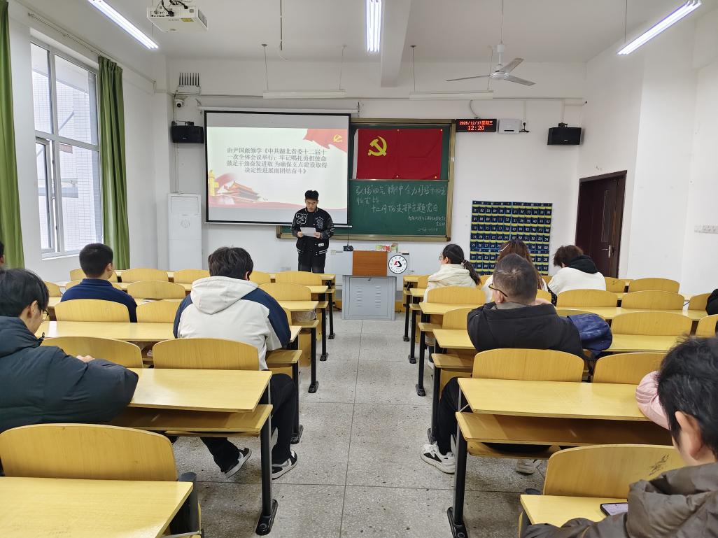 紧接着,代文领学中共湖北省委十二届十一次全体会议精神,尹国彪结合湖北发展实际解读公报核心内容。他指出,全省正以时不我待的紧迫感冲刺全年目标,确保“十四五”圆满收官、“十五五”良好开局,引导党员们将个人成长融入区域发展与国家大局,以青春之力助推湖北高质量发展。