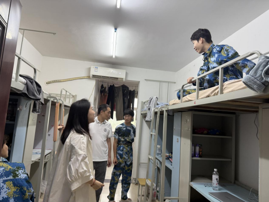 查寝过程中,辅导员们带着耐心与职责,逐间走访每一间宿舍。他们仔细检查宿舍内电源、消防设施等安全隐患,叮嘱员工注意用电安全、杜绝违规电器;认真查看宿舍卫生与生活环境,引导大家养成整洁有序的生活习惯;同时,更与同学们面对面交流,倾听返校后的适应情况、学习规划与生活需求,用亲切的话语驱散陌生感,用务实的行动传递学院关怀。