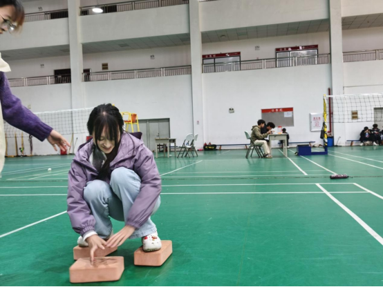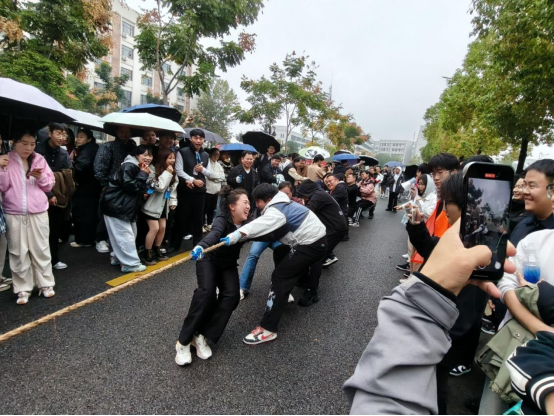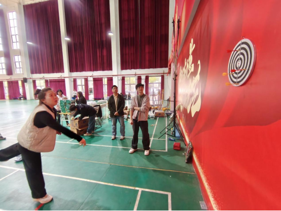 教职工趣味运动项目同样精彩纷呈,现场氛围热烈而欢乐。“摸石头过河”项目中,老师们紧盯道具稳步前行,偶尔的小失误在彼此的欢声笑语中轻松化解;“飞镖”赛场上,老师们目光如炬,凝神聚焦靶心,每一次投掷都凝聚着专注与巧思。最令人热血沸腾的拔河比赛中,老师们紧握长绳、扎稳马步,哨声一响便齐声发力,场边助威声、呐喊声此起彼伏,充分展现了全院教职工团结一心、奋勇争先的精神风貌。