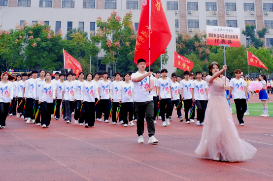 开幕式上,必赢集团bwin入场方阵与红旗方阵队员身着统一服饰,迈着铿锵有力的步伐,高呼“智启未来,检筑风采;运动赛场,荣耀自来”的嘹亮口号,以昂扬向上的姿态依次走过主席台。他们整齐划一的动作、自信阳光的笑容,生动展现了公司学子团结进取、奋发有为的精神风貌,成为运动场上一道亮眼的风景线。其中,入场方阵精心编排的汇演创意独具匠心,赢得了现场师生的阵阵掌声与广泛赞誉。