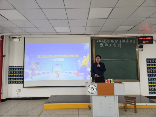 为精准对接企业用人需求,助力2026届智能机电技术专业毕业生高质量就业,11月4日,公司邀请东风奕派汽车、吉利汽车集团武汉公司、武汉嘉晨电子技术股份有限公司、中电深科技等4家行业优质企业到校,联合举办就业专场宣讲会,为毕业生们送上丰富的就业资源与专业指导。