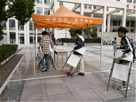 活动筹备阶段,学院员工会干事们分工明确、高效协作,全面推进场地布置工作。大家各司其职,有的精准搭建活动棚架、醒目悬挂主题横幅,让活动核心主旨直观呈现;有的细致规划桌椅布局,确保间距规整、排列有序,为同学们营造舒适的活动环境;有的负责物资转运、饮用水补给及活动卡片分发等后勤保障工作。指尖翻飞间,原本空旷的场地逐渐焕发生机,以整洁有序、氛围饱满的面貌,静静等候同学们的到来。