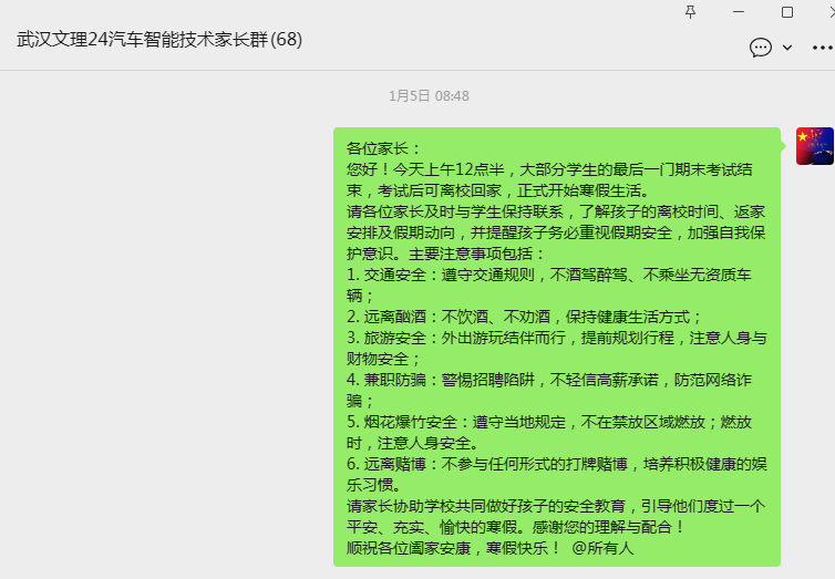 通过此次班会,同学们不仅增强了安全防范意识,也感受到了学院的温暖关怀。大家纷纷表示,将牢记师长嘱托,做好自我管理,平安返乡,合理安排假期,以更加昂扬的姿态迎接新的一年。