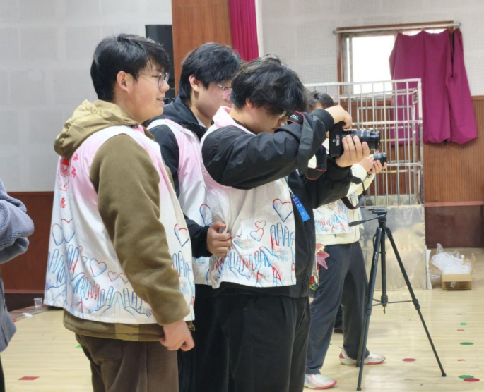 虽然没有专业的化妆造型,同学们就帮老人整理衣领、梳理头发。拍摄过程中,志愿者们耐心引导老人放松互动,捕捉“执手相看”的温情瞬间。从搀扶陪伴到帮忙调整姿势,从逗老人开心到细心整理衣角,同学们用真诚的服务赢得老人们的连连称赞。